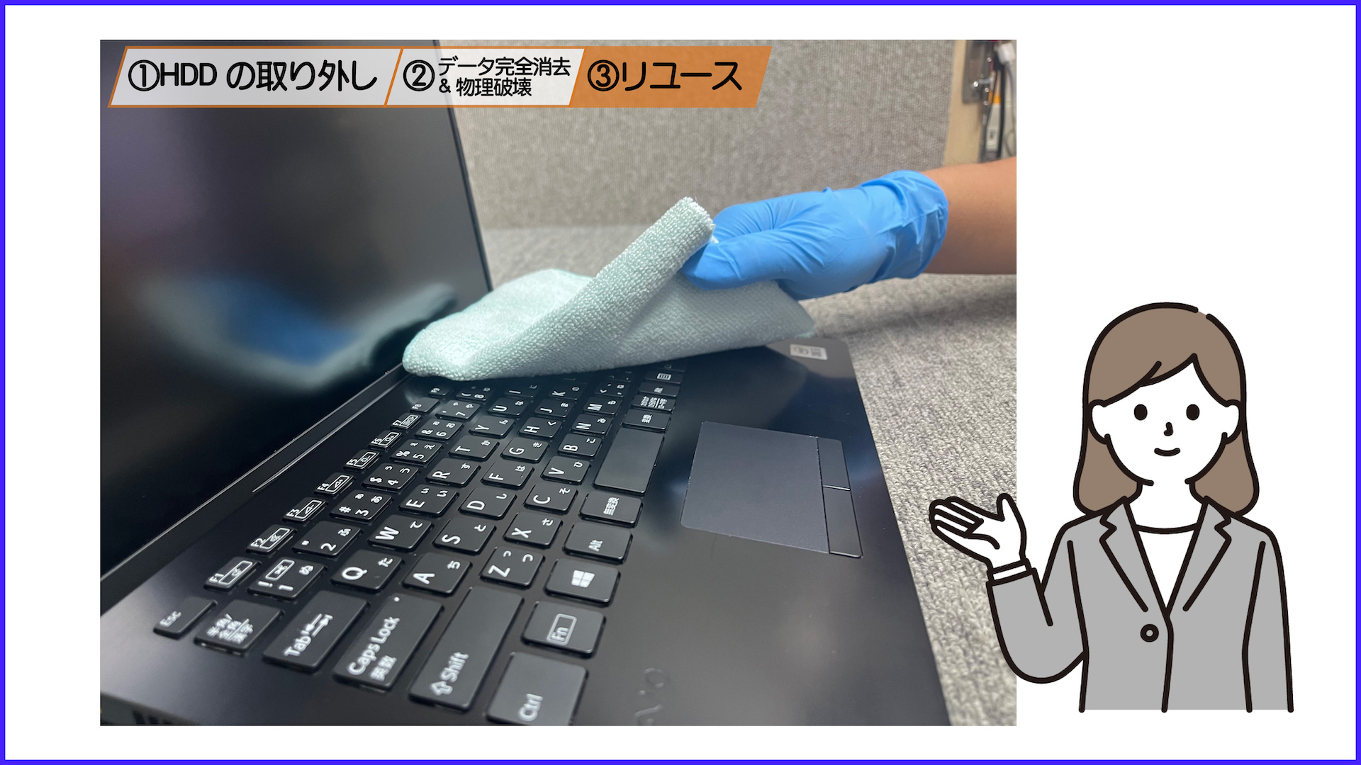 また、新しいHDDを組み込んで、中古パソコンとしてリユースされます。